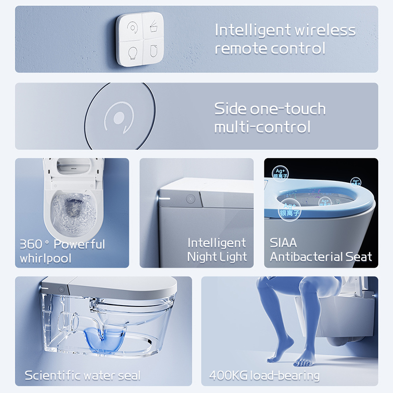 Premium wall-mounted smart toilet bidet featuring advanced hygiene technology, heated seating, and elegant modern design. Perfect for residential and commercial bathroom applications.